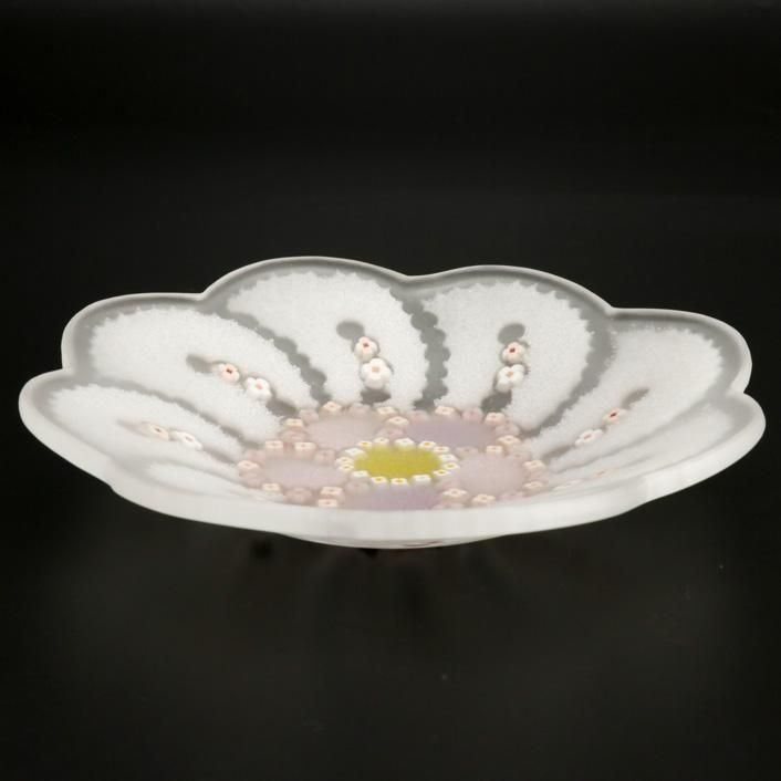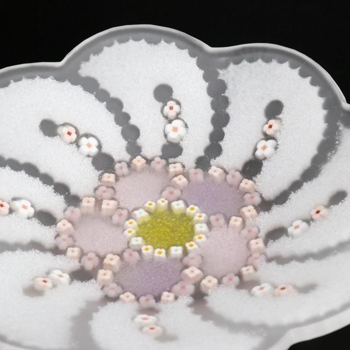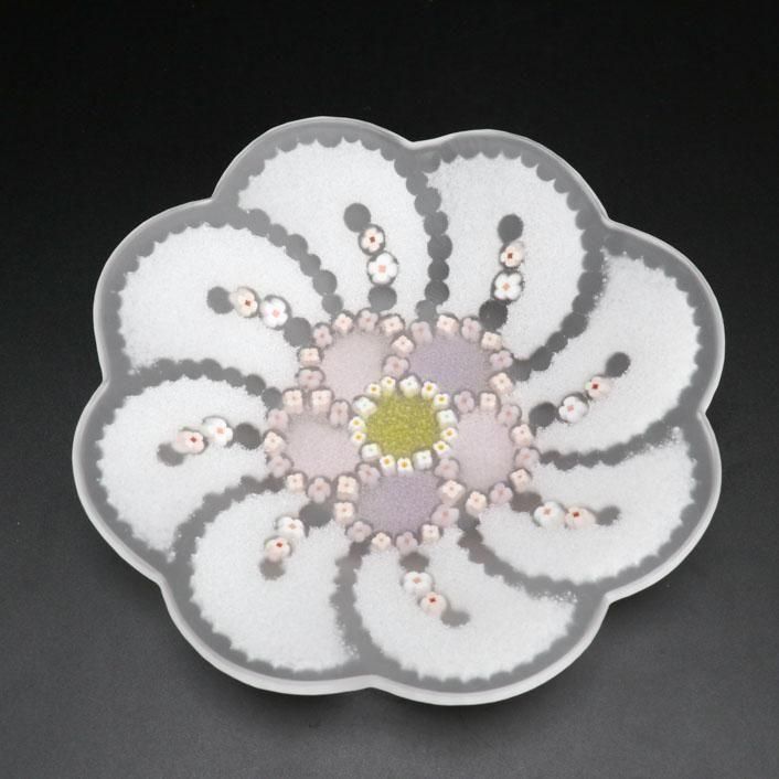 花々を敷き詰めたようなイメージのガラスの中皿です。