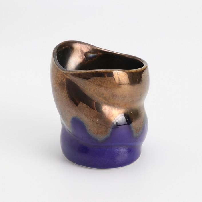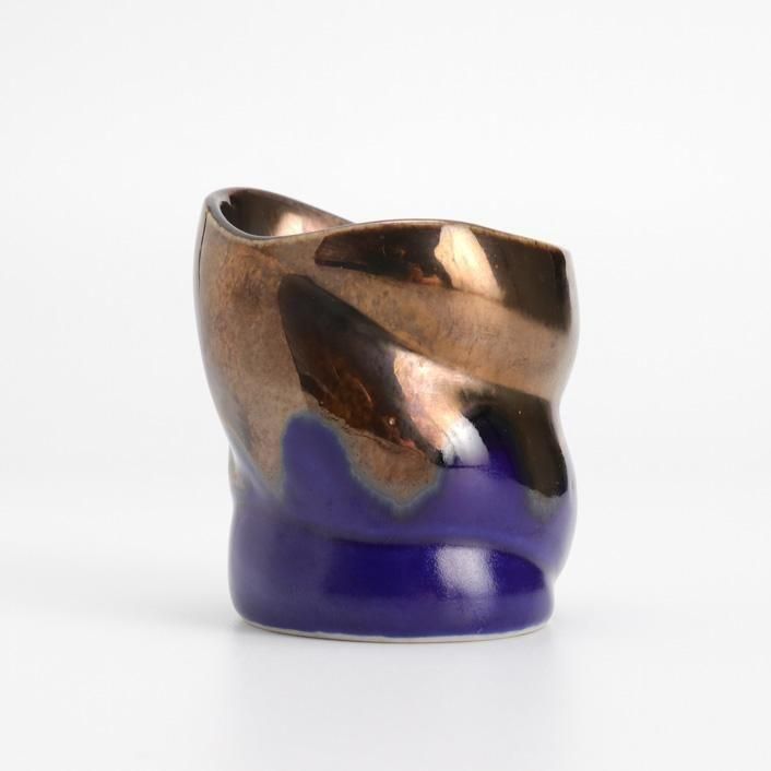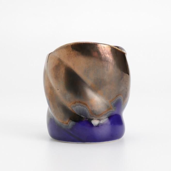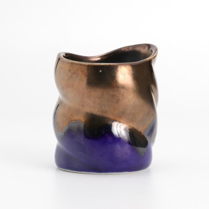 全体覆うラスター彩と青釉が美しく、裏面にはピアノの絵が施され、様々な陶芸の技術や技法を熟知した作家による遊び心満点の作品です。