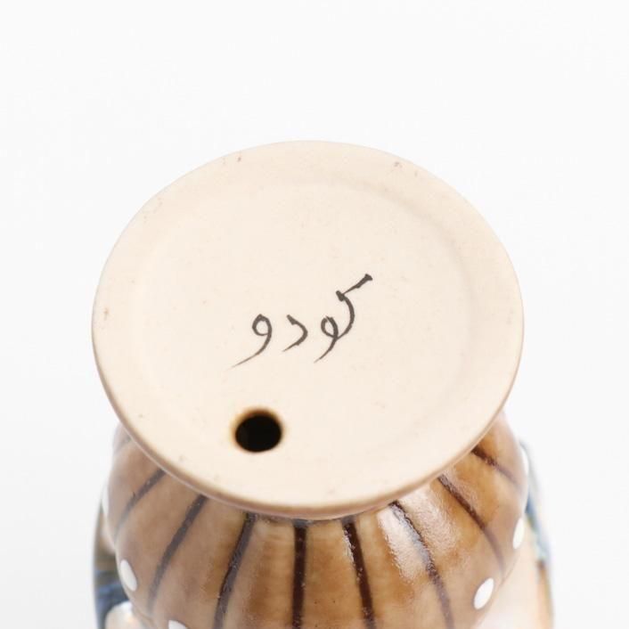 独特のフォルムが個性的などこかエキゾチックな酒器は、工藤さんが独自に配合したオリジナルの絵具を使って彩色しています。