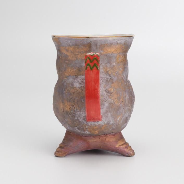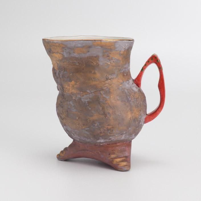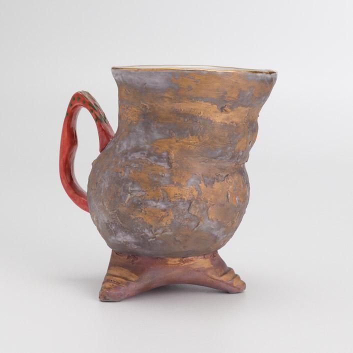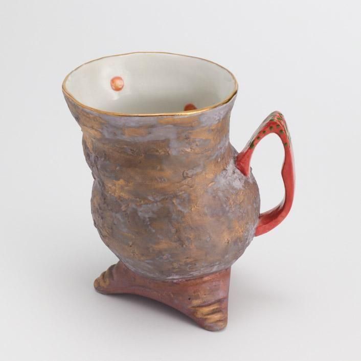 独特のフォルムが個性的などこかエキゾチックなマグカップは、工藤さんが独自に配合したオリジナルの絵具を使って彩色しています。